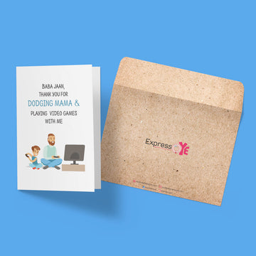Baba jaan, thank you for dodging mama and playing video games with me--If your baba accompanies you while playing video games, thank him with this card on this Parents Day and make him smile.