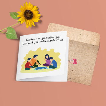 Besides the generation gap, how good you understands it all--If you think the generation gap has not affected your bond and understanding with your parents, get this beautiful card for them and speak your heart out.
