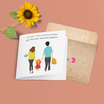 Lucky you mama baba; got the most beautiful daughter--Express it to your Mama Baba how you're so lucky to have them in a witty way. Celebrate the moment with them on this Parents day by sending them this beautiful card.