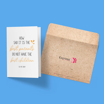 How sad it is the best parents do not have the best children; We are sorry--On this Parents Day, express your love and adoration to your parents in a different way. Let them know with this card how you strive...