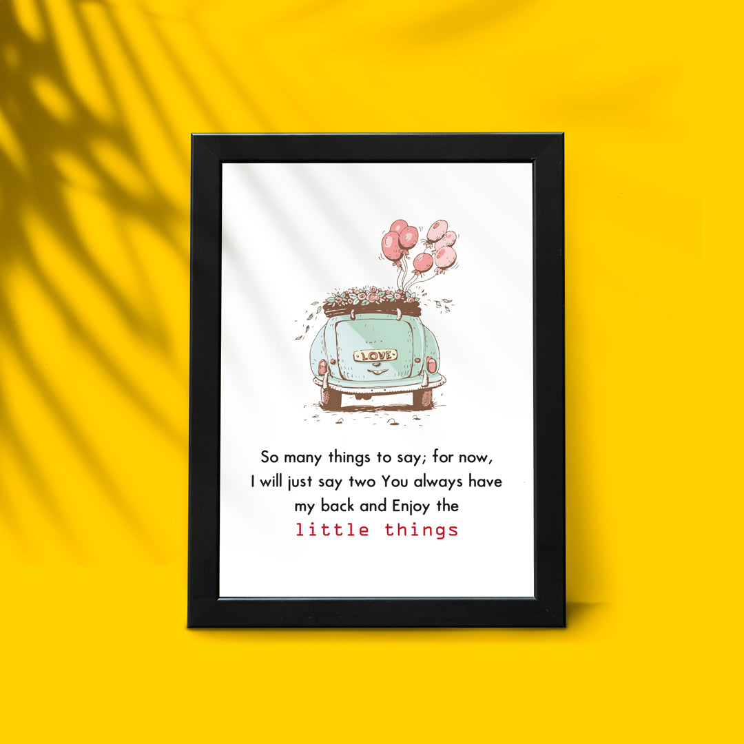 So many things to say; for now, I will just say two - You always have my back and Enjoy the little things