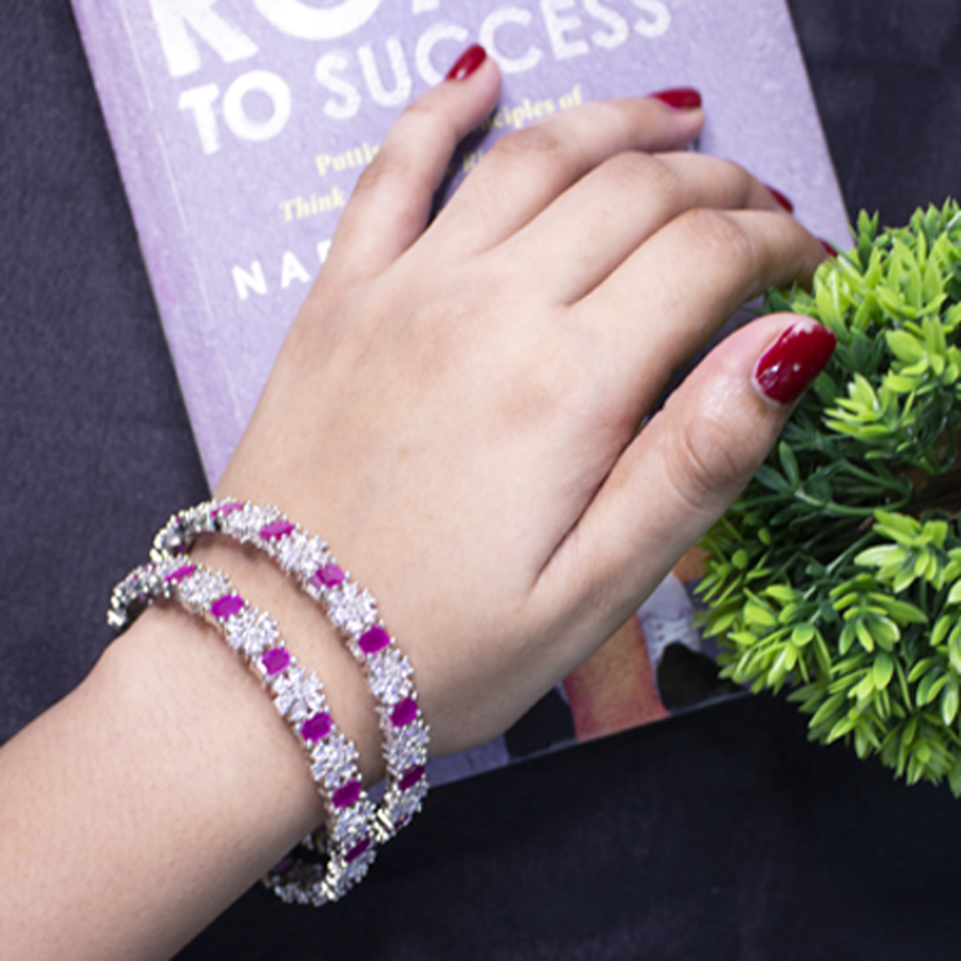 These Cairns bangles are exclusively designed for a fine evening date. Be the queen of class! Prepared with fine cut, star-studded ruby and Champagne rhinestones bangles are ready to stun all.